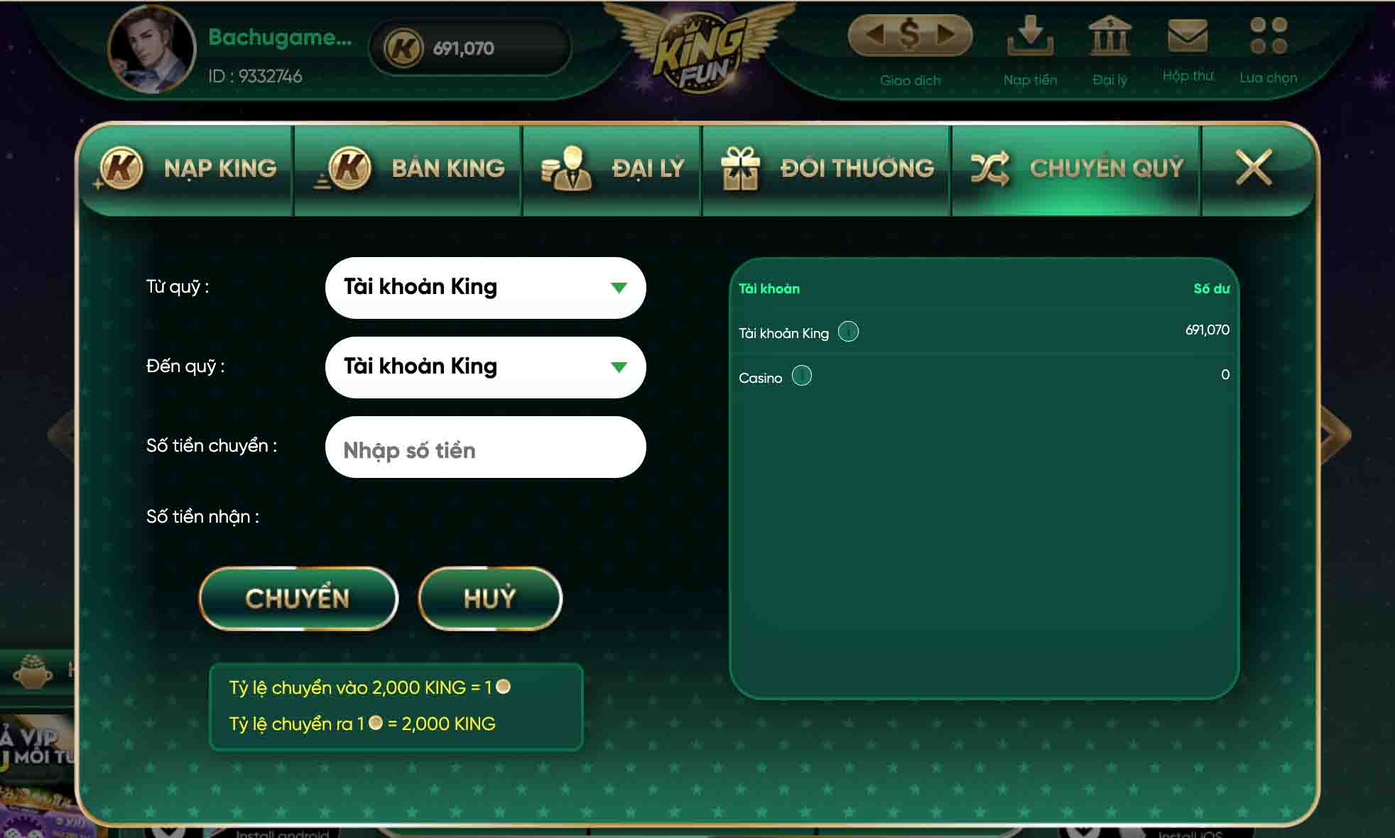 Hệ thống KINGFUN cũng mang đến cơ chế đổi thưởng nhanh chóng cho các thành viên. Việc này sẽ giúp cho khách hàng được bảo vệ quyền lợi và những giao dịch đều thực hiện theo đúng với quy định cổng game công bố.